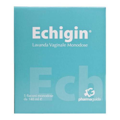 Echigin Lavanda Vaginale Monodose Dispositivo medico CE. Rispetta la naturale acidità dell’ambiente vaginale, svolge un’azione detergente, deodorante ed antialcalina. Echigin contiene nella sua formulazione le seguenti sostanze: l’echinacea purpurea, che svolge un’azione immunostimolante; l’acido lattico, che, grazie al suo pH, concorre a mantenere la fisiologica acidità della vagina; l’alfa-bisabololo, antisettico e fungicida, che interagisce con la membrana biologica dei microrganismi; il sodio cocoamfoacetato, tensioattivo anfotero, che esplica un’azione detergente blanda e delicata; la malva, la camomilla e la calendula, che svolgono un’azione sinergica allo stesso tempo calmante e lenitiva. La lavanda vaginale lascia una piacevole sensazione di freschezza e di pulito. Per la sua formula Echigin è indicata anche al termine del ciclo mestruale e per l’igiene intima dopo il rapporto sessuale.
