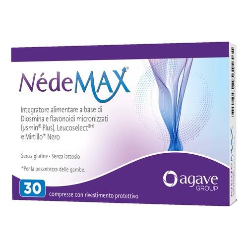 Integratore alimentare a base di diosmina e flavonoidi micronizzati, Leucoselect (proantocianidine) e mirtillo nero. Nédemax è indicato in tutti i casi di insufficiente apporto nella dieta o aumentato fabbisogno di tali nutrienti. La Vitis vinifera (da cui sono estratte le proantocianidine) e il mirtillo nero sono utili alla funzionalità del microcircolo, in caso di pesantezza delle gambe, e possiedono proprietà antiossidanti.
